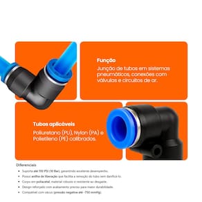 - Compatível com tubos PU, garantindo vedação perfeita e fluxo contínuo