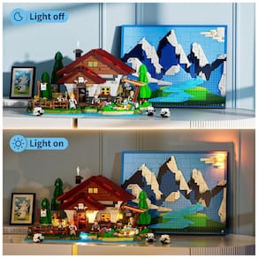 O sistema de iluminação integrado utiliza pontos de LED em tonalidade quente distribuídos pela casa e áreas-chave do cenário, simulando atmosfera de fim de tarde e início de noite em cottage alpino. A iluminação valoriza janelas, interior da cabana e áreas externas selecionadas, criando efeito de ambiente acolhedor quando exibido em prateleiras ou vitrines.?