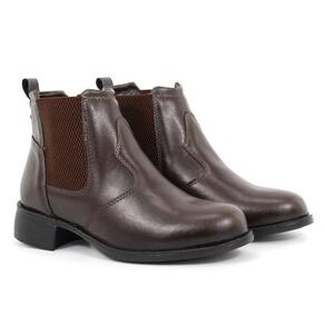 Coturno Bota Feminino Couro Marrom Chelsea com Elástico - 38 - Marrom