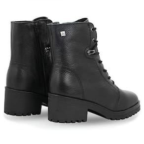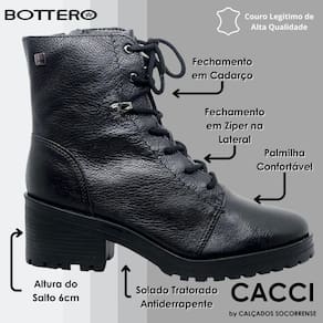Bota coturno em couro burnish. De solado tratorado médio. Possui fechamento prático na lateral interna facilitando o calce e proporcionando ajuste no pé. Detalhes em metal na cor onix.