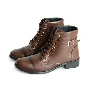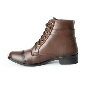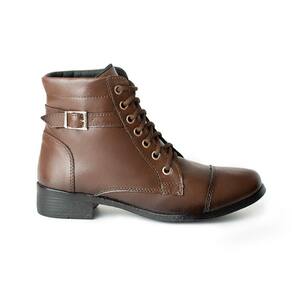 Coturno Feminino Bota Casual Dia a Dia Bico Redondo Fechamento Cadarço Detalhe Fivela Envio Rapido - 33 - Marrom