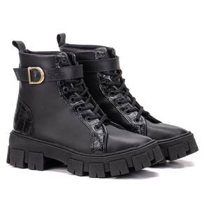 Coturno Feminino Casual com Amarração e Detalhe de Fivela Conforto e Estilo Urbano - 39 - Preto