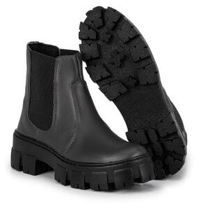 Coturno Feminino Conforto Bota Tratorada Sola Baixa - Oferta - 36 - Preto