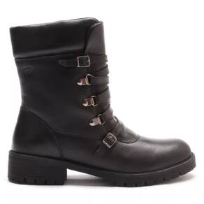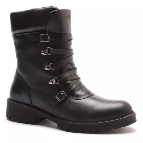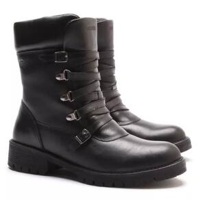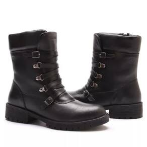 Coturno Feminino Couro Tratorado Cano Médio Fivela - 33 - Preto