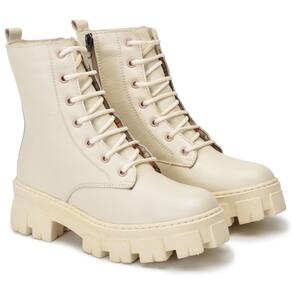 Coturno Feminino Tratorado de Couro Cano Médio Conforto - 34 - Branco