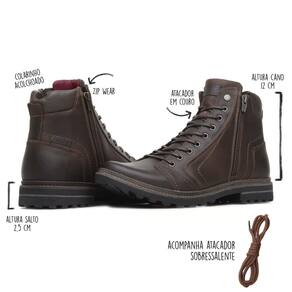 Bota Coturno Freeway Absolut 1 Masculino Cano Curto Produzido em couro natural resistente e confortável. Possui fechamento lateral com zíper, metais e etiquetas personalizados e colarinho acolchoado. Solado em borracha ecológica garante performance e segurança. Palmilha Confortpalm, eficaz na absorção de impacto e alta durabilidade. Detalhe no solado através de vira em couro. Tamanho do salto: 2,5cm Fechamento através de zíper, mais prático para calçar. Palmilhas que garantem um caminhar confortável durante toda sua vida útil. Feito em couro natural.
