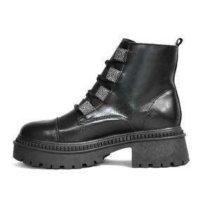 O Coturno Godiva Strass Salto Bloco Feminino Preto é a escolha perfeita para quem busca um calçado moderno e versátil para o dia a dia. Possui design minimalista, tem seu cabedal confeccionado em material sintético de alta qualidade e acabamento com detalhes em strass. Também conta com forro têxtil acolchoado, palmilha macia e fechamento feito com auxílio de cadarços. Seu solado emborrachado tem estilo tratorado e conta com salto bloco de aproximadamente 6,0 cm.