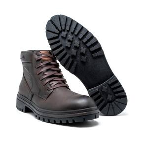 Coturno Masculino Bota Couro Solado Borracha Cadarço - 37 - Marrom