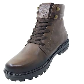 O Coturno Masculino Casual em Couro Pegada é um calçado robusto e confortável, ideal para o uso diário. Confeccionado em couro de alta qualidade, oferece resistência e durabilidade. O forro em tecido espumado contribui para a absorção do suor, mantendo os pés secos e arejados. O solado tratorado, emborrachado e antiderrapante proporciona segurança e flexibilidade durante o uso. A palmilha removível em EVA macio aumenta o conforto, enquanto o fechamento por cadarço assegura um ajuste firme. O modelo apresenta bico redondo, altura do cano de 12 cm, circunferência do cano de 34 cm e solado com 3,5 cm de altura.