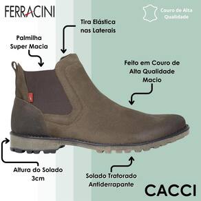 O coturno masculino da Ferracini é a escolha ideal para quem busca durabilidade, estilo e conforto em um único calçado. Seu visual clássico e robusto é perfeito para produções mais urbanas ou para complementar looks de inverno com personalidade. Produzido em material de alta qualidade com acabamento macio, oferece excelente resistência ao uso intenso, além de um toque sofisticado no visual.