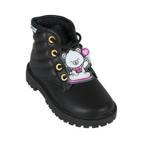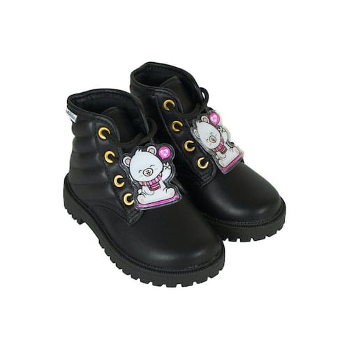 Procurando um calçado estiloso para a pequena? O Coturno Molekinha Cutie Infantil Feminino é sua resposta. Confeccionado em Napa Berlim de alta qualidade, possui detalhes em costura nas laterais. Ele apresenta cadarço em algodão com detalhe em sticker de ursinho que é uma fofura. Seu interior é forrado em tecido, a palmilha não removível é feita em espuma para mais macies ao pisar. A sola tratorada e entressola são feitas em EVA texturizado para mais segurança. Perfeito para as meninas!