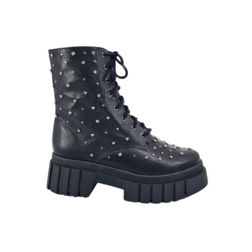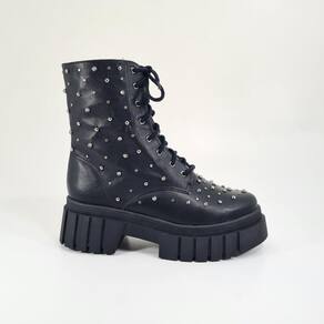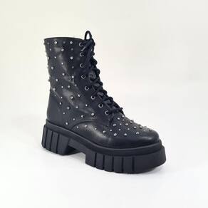 Coturno Feminino Dom&Amazona Numeração EspecialRef: AylaUm lindo coturno inspirado no mundo do rock, esse solado plataforma deixa ainda mais fashion esse modelo incrivel.Esse modelo possui bolinhas de metal e spikers em cores onix que é tipo um prata mais escuro.O solado possui 6cm de altura, possui cadarço para um ajuste perfeito e o calce fácil através do fecho lateral.Numeração especial disponivel do 41 ao 43