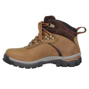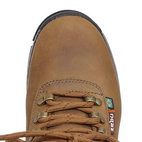 Coturno unissex Zebu fabricado em couro na cor Marrom, possui fechamento por cadarço, bico redondo, vira costurada e solado de borracha antiderrapante.