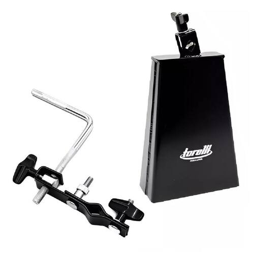 Cowbell Musical - Cowbell de 8'' Polegadas - Pintura eletrostática preta - Presilha compatível com haste de até 9.5mm - Medidas da campana 20cm x 14cm x 6,3cm - Comprimeto total com a presilha 26cm - Peso 1160Kg - Fabricante Torelli Musical - Modelo To-056