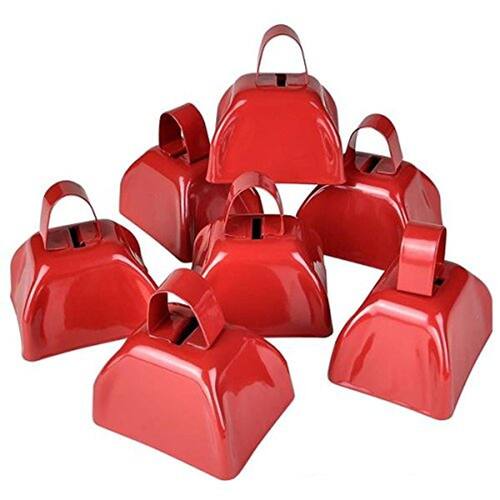 Rhode Island Novelty Cowbell de metal vermelho (1 dúzia) - Mostre seu amor pelo espírito de equipe. Cor: Vermelho - Faça barulho para sua escola ou equipe! - As baquetas têm 7,6 cm de metal. - Um total de 12 sinos. - Ótimo em um evento esportivo, jogo ou festa.