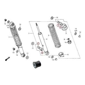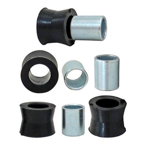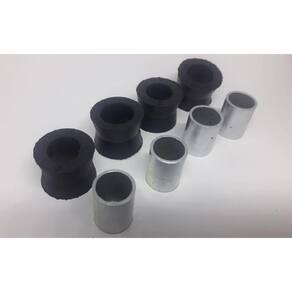 Marca: MotoBor - Quantidade Embalagem: 1 Jogo 8 Peças - Posição: Amortecedor Traseiro - Cor: Preto - Tamanho: Largura 2 cm x Altura 2,5 cm x Furo Central 1,8 cm - Material: Ferro / Borracha