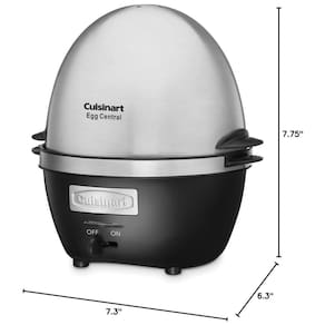 Cozinha 10 ovos com casca até obter consistência dura, média ou macia com o aquecedor de 600 watts Bandeja para escaldar com capacidade para 4 ovos e bandeja para omeletes com capacidade para 3 ovos Tampa de aço inoxidável escovado indicador LED azul, alerta audível e modo de espera zenamento de cabo integrado para fácil limpeza. MC Cubic Feet é 0,60 O fogão inclui um copo medidor de 180 ml com alfinete Marca: Não Informado