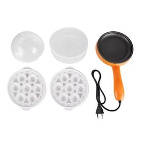 Cozedor de ovos e frigideira elétrica antiaderente com design de revestimento antiaderente, fácil de operar e limpar. Possui cabo à prova de calor e anti-queimadura, baixo consumo de energia com proteção contra desligamento automático. Multifuncional, pode ser usado para fazer bife frito, panqueca, ovo cozido no vapor, ovo frito. Feito de material ABS e PP, com acabamento liso e fundo plano para distribuição uniforme de calor.Base antiderrapante