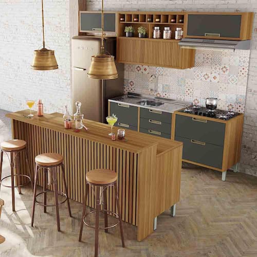 Cozinha 08 Peças Ripado Nesher Imperatriz Gourmet 100 MDF - Grafite