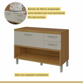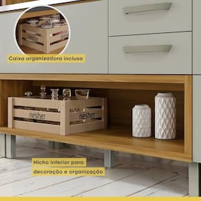 Outro grande diferencial é o balcão com nicho que segue junto uma caixa organizadora. A caixa organizadora pode ser utilizada como uma fruteira com tudo arejado e a mão, e o nicho para guarda de utensílios mais no dia a dia, facilitando acesso e manutenção.