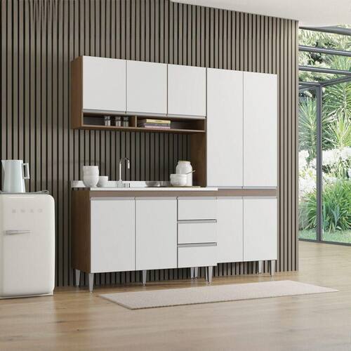 Cozinha 200cm Com Balcão Pia Paneleiro Sabrina Menu Móveis Branco A Cozinha Sabrina Modulada foi desenvolvida para atender todas as suas necessidades do dia a dia com um design moderno, funcionalidade e versatilidade. A Cozinha Modulada e a tendencia do momento e foi arquitetada com modulos uteis que vao facilitar a sua rotina diaria, preparos dos alimentos e armazenamento dos utensilios e mantimentos, mantendo sua cozinha sempre organizada. Por se tratar de armarios de cozinha modulados voce pode ajustar os modulos conforme o espaco disponivel e montar diversas modulacoes diferentes para deixar o ambiente muito mais aconchegante. A elegancia fica por conta dos puxadores em perfil e os pes dando um toque unico de sofisticacao. A Cozinha Sabrina e produzida com materiais de excelente qualidade, garantindo a durabilidade e vida util. O melhor em moveis no design atual aliando conforto, qualidade e otimos precos! Caracteristicas: Produzida em MDP de 15 mm Acabamento UV Portas com Dobradica Metalica Gavetas com Corredica Telescopica Puxadores Perfil em ABS Pes com Regulagem em ABS NAO acompanha TAMPO e PIA