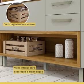 Outro grande diferencial é o balcão com nicho que segue junto uma caixa organizadora. A caixa organizadora pode ser utilizada como uma fruteira com tudo arejado e a mão, e o nicho para guarda de utensílios mais utilizados no dia a dia, facilitando acesso e manutenção.