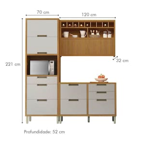 - Modernos puxadores embutidos em alumínio na cor champanhe, beleza, qualidade e durabilidade. Acabamento da Prateleira: Impressão Escala de Brilho da Prateleira: Fosco Acabamento da Gaveta: Impressão Escala de Brilho da Gaveta: Fosco Material do Puxador da Gaveta: Alumínio Acabamento da Porta: Impressão Escala de Brilho da Porta: Fosco Material do Puxador da Porta: Alumínio Acabamento dos Pés: Pintura Acompanha Tampo: Sim Altura dos Pés: 16 cm Ambiente Principal: Cozinha codigo_ean: 7909903388419 Complexidade da Montagem: Alta: deve ser montado por um montador especializado Cor: Freijó/Off White Cor do Produto: Freijó/Off White Escala de Brilho: Fosco Espessura do Tampo: 15 mm Gaveta com Chave: Não Itens Inclusos: 1 Cozinha Completa, 1 Kit Ferragens e 1 Manual de Montagem. Manual de Montagem e Instalação: https://product-hub-prd.madeiramadeira.com.br/865477/documents/0353f9ec-082d-4138-8b6a-b6a89863aa59imperatriz3pCs500772500773.pdf Material da Dobradiça/Corrediça da Porta: Aço Material da Gaveta: MDF Material da Porta: MDF Material da Prateleira: MDF Material do Fundo: Chapa de Fibra Material do Tampo: MDF Material dos Pés: Polipropileno Medida de cada item (A x L x P): 1 Paneleiro: 221cm x 70cm x 52cm 1 Aereo 120cm: 78cm x 120cm x 52cm 1 Balcão 120cm: 86cm x 120cm x 52cm modular: Sim Necessita Montagem: Sim O Balcão Acompanha Pia: Não Origem do Produto: Nacional Pés Reguláveis: Sim Peso: 225,4 kg Peso Máximo por Gaveta: 5 kg Peso Máximo por Prateleira: 15 kg Possui Pés: 09 Possui Portas: Sim Possui Prateleiras: Sim Possui recorte para Cooktop: Não Possui Rodízio: Não Possui Vidro: Não Produto Montado: Sim Recomendações de Uso, Manutenção e Limpeza: Utilizar pano macio levemente umedecido e na sequencia pano macio seco. Sapatas Niveladoras: Sim Sistema de Montagem: Parafusos, cavilhas e Minifix. Tipo de Corrediça da Gaveta: Metálica Telescópica Tipo de Dobradiça da Porta: 35 mm Tipo de Puxador da Gaveta: Externo Tipo de Puxador da Porta: Externo Ean: 7909903388419