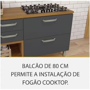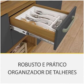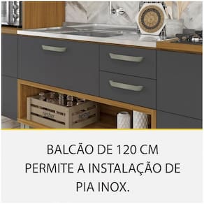 Outro grande diferencial é o balcão com nicho que segue junto uma caixa organizadora. A caixa organizadora pode ser utilizada como uma fruteira com tudo arejado e a mão, e o nicho para guarda de utensílios mais usados no dia a dia, facilitando acesso e manutenção.
