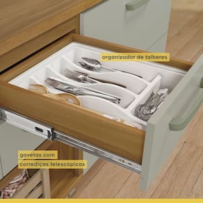- Corrediça Telescópica Abertura Integral: Robusta e com três estágios, esta corrediça é ideal para o diário, facilitando o acesso aos utensílios.