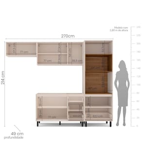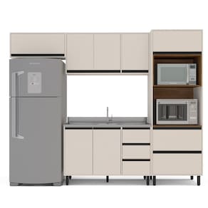 Estilo : Moderno Modular : Não Peso (kg) : 112.64 Garantia : 06 Meses Altura (cm) : 214 Acabamento : Pintura UV Largura (cm) : 270 Possui Pés : 9 Possui Portas : Sim Tipo de Porta : Misto (Bater e Basculante) Altura dos Pés : 15 Pés Reguláveis : Sim Possui Gavetas : Sim Possui Rodízio : Não Suporta Até (kg) : 30 Acompanha Tampo : Não Profundidade (cm) : 49 Escala de Brilho : Semi-Fosco Gaveta com Chave : Não Material dos Pés : Plástico Serviço Montagem : 114259443 Material da Porta : MDP Origem do Produto : Nacional Acabamento dos Pés : Finish Foil Ambiente Principal : Cozinha Balcão Suporta Pia : Não Material da Gaveta : MDP Material Principal : MDP Possui Prateleiras : Sim Acabamento da Porta : Finish Foil Quantidade de Peças : 4 Sapatas Niveladoras : Sim Acabamento da Gaveta : Finish Foil Balcão Acompanha Pia : Não Quantidade de Portas : 8 Material da Prateleira : MDP Peso Máximo por Gaveta : 5 Acabamento da Prateleira : Finish Foil Tipo de Puxador da Porta : Externo Escala de Brilho da Porta : Semi-Fosco Tipo de Puxador da Gaveta : Externo Escala de Brilho da Gaveta : Semi-Fosco Peso Máximo por Prateleira : 3 Tipo de Armário de Cozinha : Cozinha Compacta Possui Recorte para Cooktop : Não Tipo de Corrediça da Gaveta : Metálica Telescópica Material do Puxador da Porta : Plástico Material do Puxador da Gaveta : Plástico Escala de Brilho da Prateleira : Semi-Fosco Medida de Cada Item (A x L x P) (novo) : Balcão 81cm x 120cm x 49 cm; Aéreo 59cm x 120 cm x 29 cm; Basculante 35,7cm x 80 cm x 29xm; Torre Quente 214cm x 70cm x 49cm Material da Dobradiça/Corrediça da Porta : Alumínio Marca : Politorno Cor Interna : Branco Cor do Produto : Branco/Creme Itens Inclusos : 6 Cozinha Desmontada, Kit de Ferragens, Manual de Montagem e Termo de Garantia Cor Predominante : Bege Linha ou Coleção : Koya Quantidade de Prateleiras : 03 Prateleiras Quantidade de Gavetas : 04 Gavetas Tamanho Indicado do Tampo (L x P) : 120x81x49