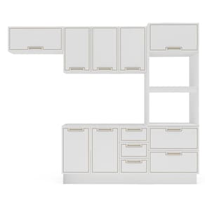 Cozinha 4 Peças Balcão 3 Gavetas 2 Portas Torre Quente Aéreo sem Tampo Amara Branco