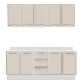 Modular : Sim Peso (kg) : 110.92 Garantia : 06 Meses Altura (cm) : 224.5 Acabamento : Pintura UV Largura (cm) : 200 Possui Pés : Rodapé Possui Vidro : Não Possui Portas : Sim Tipo de Porta : Misto (Bater e Basculante) Altura dos Pés : 15 Pés Reguláveis : Sim Possui Gavetas : Sim Possui Rodízio : Não Suporta Até (kg) : 30 Acompanha Tampo : Sim Profundidade (cm) : 52 Escala de Brilho : Semi-Fosco Gaveta com Chave : Não Material dos Pés : Plástico Serviço Montagem : 114259443 Material da Porta : MDF/MDP Material do Tampo : MDF/MDP Origem do Produto : Nacional Acabamento dos Pés : Pintura Ambiente Principal : Cozinha Balcão Suporta Pia : Sim Material da Gaveta : MDF/MDP Material Principal : MDF/MDP Possui Prateleiras : Sim Acabamento da Porta : Finish Foil Quantidade de Peças : 4 Sapatas Niveladoras : Sim Acabamento da Gaveta : Finish Foil Balcão Acompanha Pia : Não Quantidade de Portas : 4 Portas Material da Prateleira : MDF/MDP Peso Máximo por Gaveta : 5 Acabamento da Prateleira : Finish Foil Tipo de Puxador da Porta : Externo Escala de Brilho da Porta : Semi-Fosco Tipo de Puxador da Gaveta : Externo Escala de Brilho da Gaveta : Semi-Fosco Peso Máximo por Prateleira : 3 Tipo de Armário de Cozinha : Cozinha Compacta Possui Recorte para Cooktop : Não Tipo de Corrediça da Gaveta : Metálica Telescópica Material do Puxador da Porta : Alumínio Material do Puxador da Gaveta : Alumínio Escala de Brilho da Prateleira : Semi-Fosco Medida de Cada Item (A x L x P) (novo) : Balcão: 120x81x50,5; Aéreo 120x60x30,5; Balcão 83x92,5x52; Aéreo 80x66x30,5 Material da Dobradiça/Corrediça da Porta : Alumínio Marca : Politorno Cor Interna : Branco Cor : Branco/Creme Cor do Produto : Branco/Creme Itens Inclusos : 1 Cozinha Desmontada + Kit de Ferragens + Manual de Montagem + Termo de Garantia Cor Predominante : Bege Linha ou Coleção : Amara Quantidade de Prateleiras : 04 Prateleiras Quantidade de Gavetas : 03 Gavetas Quantidade do Produto : 4
