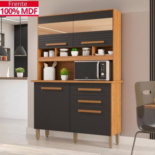 Altura: 115 CM | Largura: 115 CM | Quantidade de Gavetas: 2 Gavetas | Quantidade de Portas: 4 Portas | Material da Estrutura: MDP e MDF | Profundidade: 40 cm | Tipo de móveis de cozinha: Armário | Materiais do corpo: MDP E MDF Cor: Cinamomo/Grafite