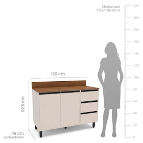 Medida de cada item (A x L x P): Balcão 81cm x 120cm x 49 cm; Aéreo 59cm x 120 cm x 29 cm; Basculante 35,7cm x 80 cm x 29xm; Paneleiro 214 cm x 36,8cm x 49cm; Torre Quente 214cm x 70cm x 49cm