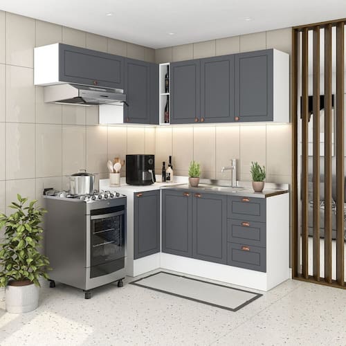Cozinha Pérola Completa: o equilíbrio ideal entre design e funcionalidade para valorizar o seu lar! Acabamento da Prateleira: Pintura Escala de Brilho da Prateleira: Semi-Brilho Acabamento da Gaveta: Pintura Escala de Brilho da Gaveta: Semi-Brilho Material do Puxador da Gaveta: Plástico Acabamento da Porta: Pintura Escala de Brilho da Porta: Semi-Brilho Material do Puxador da Porta: Plástico Acompanha Tampo: Sim Ambiente Principal: Cozinha Balcão Suporta Pia: Sim codigo_ean: 7899885096481 Complexidade da Montagem: Alta: deve ser montado por um montador especializado Cor: Cinza/Branco Cor do Produto: Cinza/Branco Cor Interna: Branco Escala de Brilho: Semi-Brilho Gaveta com Chave: Não Itens Inclusos: 1 Cozinha Completa, Kit Ferragens, Manual de Montagem e Termo de Garantia Linha ou Coleção: Pérola Manual de Montagem e Instalação: https://product-hub-prd.madeiramadeira.com.br/438112395/documents/03ce2003-0303-4d56-a1f5-ffd6593483723156102622417558889805915.pdf Marca: Yescasa Material da Corrediça: Alumínio Material da Dobradiça/Corrediça da Porta: Alumínio Material da Gaveta: MDF/MDP Material da Porta: MDF/MDP Material da Prateleira: MDF/MDP Material do Tampo: MDF/MDP Material dos Pés: MDF Medida de cada item (A x L x P): Balcão (84cm x 120cm x 50,5cm); Aéreo 3 Portas (67cm x 120cm x 36,5 cm); Basculante ( 33,5cm x 80cm x 36,5cm); Aéreo Canto (67cm x 90+52cm x 35cm); Balcão Canto ( 94cm x 90+52cm x 52cm) modular: Sim Necessita Montagem: Sim O Balcão Acompanha Pia: Não Origem do Produto: Nacional Pés Reguláveis: Não Peso: 115,67 kg Peso Máximo por Gaveta: 5 kg Peso Máximo por Prateleira: 5 kg Possui Pés: Rodapé Possui Portas: Sim Possui Prateleiras: Sim Possui recorte para Cooktop: Não Possui Rodízio: Não Produto Montado: Sim Recomendações de Uso, Manutenção e Limpeza: Utilize um pano macio umedecido com água e sabão neutro, seguido de pano seco. Não utilize produtos químicos ou abrasivos para limpeza, pois estes danificam o revestimento do móvel. Sapatas Niveladoras: Não Sistema de Montagem: Cavilha, Parafuso, Minifix e prego. Acompanha bucha e parafuso para fixação na parede Tipo de Corrediça da Gaveta: Simples Tipo de Dobradiça da Porta: Soft close Tipo de Dobradiça/Corrediça da Porta: Soft Close Tipo de Puxador da Gaveta: Externo Tipo de Puxador da Porta: Externo