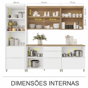 Outro grande diferencial é o balcão com maior altura útil do mercado, proporcionando maior espaço para guarda de utensílios e mantimentos e ainda com pés menores 10cm (mais regulagem de 2,5cm). O pé de 10 cm, deixa o conjunto com maior robustez, proporcionalidade e beleza.