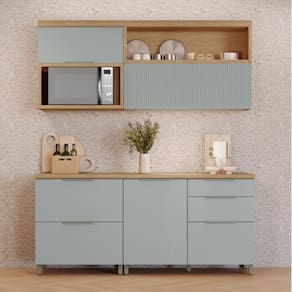 Diferenciais únicos: - Modernas portas com abertura basculante e pistão a gás, sendo uma de 120cm canelada, tendencia, sofisticação e beleza. - Dobradiças com freio anti-impacto slow motion, porta de 60 cm com 3 dobradiças, conforto e garantia de durabilidade. - Modernos puxadores de alumínio na cor da porta, tendencia, sofisticação, durabilidade e beleza. - Corrediça Telescópica Abertura Integral: Robusta e com três estágios, esta corrediça é ideal para o uso diário, facilitando o acesso aos utensílios. - Ergonômico gavetão com laterais e traseiro altos para armazenagem com segurança de utensílios e mantimentos. - Gaveta porta codimentos e Gaveta com organizador de talheres, conforto e praticidade no uso diario. Conheça toda a modulação e faça seu projeto!
