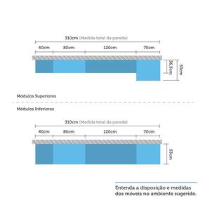 Composta por 6 peças cuidadosamente pensadas para sua organização. Conta com acessórios requintados como puxadores tipo gola, corrediças metálicas telescópicas para abertura total das gavetas e pés em Poliestireno. Os módulos são montados individualmente e permitem a instalação da forma que melhor se adeque ao seu espaço.