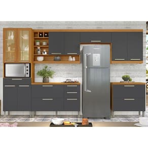 A Cozinha Burguesa tem design contemporâneo inspirado em cozinhas planejadas, ferragens inovadoras e tecnológicas e é muito prática. Disponível em módulos, permite composições variadas, conforme o gosto do consumidor. Projetada para proporcionar praticidade e funcionalidade no uso diário, produzida com matérias prima de alto nível proporcionando qualidade superior e durabilidade. Diferenciais únicos: • Puxadores de alumínio no padrão aço inox • Bonitas e robustas molduras • Dobradiça SlowMotion com fechamento anti-impacto • Corrediça telescópica abertura integral: robusta e com três estágios, esta corrediça é ideal para o uso diário, facilitando o acesso aos utensílios • Ergonômicos gavetões com laterais e traseiros altas para armazenagem de utensílios e mantimentos . Acabamento da Prateleira: Impressão Escala de Brilho da Prateleira: Fosco Acabamento da Gaveta: Impressão Escala de Brilho da Gaveta: Fosco Material do Puxador da Gaveta: Alumínio Acabamento da Porta: Impressão Escala de Brilho da Porta: Fosco Material do Puxador da Porta: Alumínio Acabamento dos Pés: Pintura Acompanha Tampo: Sim Altura dos Pés: 16 cm Ambiente Principal: Cozinha codigo_ean: 7909903389737 Complexidade da Montagem: Alta: deve ser montado por um montador especializado Cor: Freijó/Grafite Cor do Produto: Freijó/Grafite Escala de Brilho: Fosco Espessura do Tampo: 15 mm Gaveta com Chave: Não Itens Inclusos: 1 Cozinha Completa, 1 Kit Ferragens e 1 Manual de Montagem. Linha ou Coleção: Burguesa Manual de Montagem e Instalação: https://product-hub-prd.madeiramadeira.com.br/864405/documents/cb34e061-66b1-4318-8cb1-7f8ab8121dd1inhaburguesapremiuim6peCas.pdf Material da Dobradiça/Corrediça da Porta: Aço Material da Gaveta: MDF Material da Porta: MDF Material da Prateleira: MDF Material do Fundo: Chapa de Fibra Material do Tampo: MDF Material dos Pés: Polipropileno Medida de cada item (A x L x P): 1 armario aereo 120 cm x 86,2 cm x 32 cm, 01 armário aéreo 80 cm x 86,2 cm x 32 cm, 01 balcão com tampo 120 cm x 86 cm x 52,5 cm, 01 balcao com tampo 80 cm x 86 cm x 52,5 cm, 01 paneleiro nicho forno 70 cm x 221 cm x 52 cm e aéreo geladeira 34cm x 80cm x 32cm. modular: Sim Necessita Montagem: Sim O Balcão Acompanha Pia: Não Origem do Produto: Nacional Pés Reguláveis: Sim Peso: 236 kg Peso Máximo por Gaveta: 5 kg Peso Máximo por Prateleira: 15 kg Possui Pés: 13 Possui Portas: Sim Possui Prateleiras: Sim Possui recorte para Cooktop: Não Possui Rodízio: Não Possui Vidro: Sim Produto Montado: Sim Recomendações de Uso, Manutenção e Limpeza: Utilizar pano macio levemente umedecido e na sequência pano macio seco. Sapatas Niveladoras: Sim Sistema de Montagem: Parafusos, cavilhas e minifix Tipo de Corrediça da Gaveta: Metálica Telescópica Tipo de Dobradiça da Porta: 35 mm Tipo de Puxador da Gaveta: Externo Tipo de Puxador da Porta: Externo Ean: 7909903389737