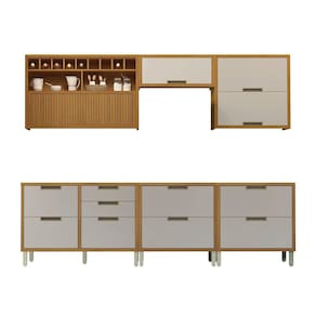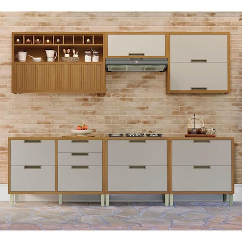 - Modernos puxadores embutidos em alumínio na cor champanhe, beleza, qualidade e durabilidade. Acabamento da Prateleira: Impressão Escala de Brilho da Prateleira: Fosco Acabamento da Gaveta: Impressão Escala de Brilho da Gaveta: Fosco Material do Puxador da Gaveta: Alumínio Acabamento da Porta: Impressão Escala de Brilho da Porta: Fosco Material do Puxador da Porta: Alumínio Acabamento dos Pés: Pintura Acompanha Tampo: Sim Altura dos Pés: 16 cm Ambiente Principal: Cozinha codigo_ean: 7909903388358 Complexidade da Montagem: Alta: deve ser montado por um montador especializado Cor: Freijó/Off White Cor do Produto: Freijó/Off White Escala de Brilho: Fosco Espessura do Tampo: 15 mm Gaveta com Chave: Não Itens Inclusos: 1 Cozinha Completa, 1 Kit Ferragens e 1 Manual de Montagem. Manual de Montagem e Instalação: https://product-hub-prd.madeiramadeira.com.br/865471/documents/b0d1e0a8-e3f7-4efa-807f-94a8c21ed432imperatriz6pCs500766500767.pdf Material da Dobradiça/Corrediça da Porta: Aço Material da Gaveta: MDF Material da Porta: MDF Material da Prateleira: MDF Material do Fundo: Chapa de Fibra Material do Tampo: MDF Material dos Pés: Polipropileno Medida de cada item (A x L x P): 1 Aereo 120cm: 78cm x 120cm x 52cm 1 Geladeira: 34cm x 80cm 32cm 1 Aereo 80cm: 78cm x 80cm x 32cm 1 Balcão 120cm: 86cm x 120cm x 52cm 2 Balcão 80cm: 86cm x 80cm x 52cm modular: Sim Necessita Montagem: Sim O Balcão Acompanha Pia: Não Origem do Produto: Nacional Pés Reguláveis: Sim Peso: 204 kg Peso Máximo por Gaveta: 5 kg Peso Máximo por Prateleira: 15 kg Possui Pés: 13 Possui Portas: Sim Possui Prateleiras: Sim Possui recorte para Cooktop: Não Possui Rodízio: Não Possui Vidro: Não Produto Montado: Sim Recomendações de Uso, Manutenção e Limpeza: Utilizar pano macio levemente umedecido e na sequencia pano macio seco. Sapatas Niveladoras: Sim Sistema de Montagem: Parafusos, cavilhas e Minifix. Tipo de Corrediça da Gaveta: Metálica Telescópica Tipo de Dobradiça da Porta: 35 mm Tipo de Puxador da Gaveta: Externo Tipo de Puxador da Porta: Externo Ean: 7909903388358