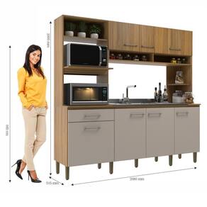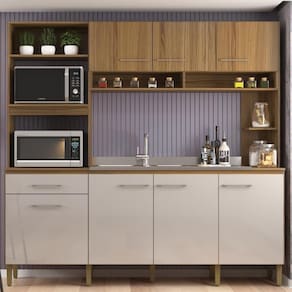 Dimensões: 200x207,8x51,5cm (AxLxP) | Altura: 200 cm | Largura: 207,8 cm | Profundidade: 51,5 cm | Peso: 100,1 kg | Acompanha pia: Não | Acompanha tampo: Não | Acabamento: Pintura UV | Espaço útil para forno: Superior 37,3x60x51,5cm (AxLxP) | Inferior 40x60x51,5 cm (AxLxP) | Cor Interna: Ipê | Tipo de porta: Bater | Altura dos pés: 17 cm | Material dos pés: Polipropileno | Tipo de dobradiça: Metálica | Tipo de corrediça: Metálica | Manutenção e limpeza: Utilize pano umedecido com água | Complexidade da montagem: Média: pode ser montado por mais de uma pessoa e|ou necessite de maior conhecimento para montagem | Material: MDP 15mm | Cor: Ipê|Cristalo | Quantidade de pés: 9 pés | Quantidade de portas: 7 portas | quantidade de gavetas: 1 gaveta | Material do puxador: ABS | Conteúdo da embalagem: 1 cozinha, kit ferragens e manual de montagem Cor: Ipê|Cristalo