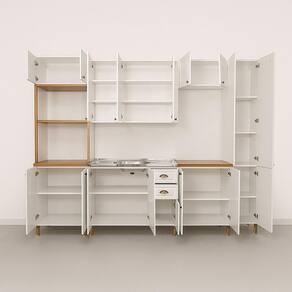 A Cozinha Americana Amoudi é a escolha ideal para quem busca praticidade e estilo. Fabricada em MDP de alta qualidade e na cor branca, ela traz um design moderno que se adapta facilmente a diversos ambientes, garantindo resistência, fácil limpeza e ótimo aproveitamento do espaço.