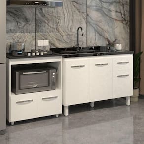 Cozinha Armário Balcão Gabinete De Pia Aline 120 Cm E Balcão Evelyn Para Fogão Cooktop 4 Bocas E Forno Branco Renove sua cozinha com o Kit Balcão para Pia Aline 118 cm e Balcão para Cooktop Evelyn 4 Bocas da Mobília Decor! A cozinha é o coração da casa, e merece ser um espaço bonito e acolhedor. Com o Kit Balcão Aline e Evelyn, você terá móveis que combinam perfeitamente com o seu estilo, trazendo modernidade e praticidade para o seu dia a dia.