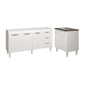 Cozinha Balcão Armário Gabinete De Pia 150 Cm Deise E Balcão Fran Para Fogão Cooktop 5 Bocas Branco Conheça o Kit Balcão de Pia 150 cm + Balcão para Cooktop 5 Bocas, a solução ideal para quem deseja unir praticidade e elegância na cozinha. Com um design contemporâneo, o balcão de pia oferece 3 portas e 3 gavetas, garantindo amplo espaço para organizar seus utensílios. O balcão para cooktop possui duas portas, proporcionando uma cozinha mais funcional e eficiente. Produzido em MDP, com puxadores cromados e pés reguláveis, esse conjunto traz durabilidade e estilo, além de fácil nivelamento para qualquer ambiente. Perfeito para modernizar sua cozinha com charme e organização!