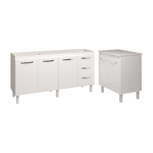 Cozinha Balcão Armário Gabinete De Pia 150 Cm Deise E Balcão Jane Para Microondas Ou Forno Elétrico Branco Conheça o Kit Balcão de Pia 150 cm + Balcão para Microondas ou Forno Elétrico, a solução ideal para quem deseja unir praticidade e elegância na cozinha. Com um design contemporâneo, o balcão de pia oferece 3 portas e 3 gavetas, garantindo amplo espaço para organizar seus utensílios. O balcão para cooktop possui duas portas, proporcionando uma cozinha mais funcional e eficiente. Produzido em MDP, com puxadores cromados e pés reguláveis, esse conjunto traz durabilidade e estilo, além de fácil nivelamento para qualquer ambiente. Perfeito para modernizar sua cozinha com charme e organização!