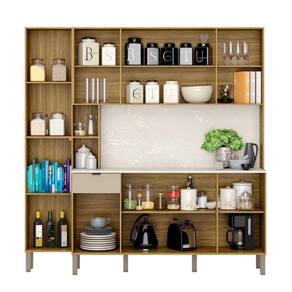 O Armário possui 9 portas e 1 gaveta com corrediças telescópicas destaca-se por sua praticidade e eficiência de uso, podendo ser utilizada como complemento de cozinha.