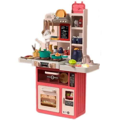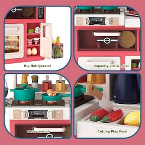 As crianças vão adorar brincar de culinária com a Cozinha de brinquedo super moderna e educativa Gire o botão do fogão e a panela sairá vapor, acenderá luz e emitirá som que simula um fogão real Simule a cena da culinária e desenvolva o interesse em cozinhar nas crianças. A torneira solta água de verdade A criança pode experimentar lavar a louça de uma forma divertida. Várias formas de abrir a porta, como abertura deslizante e plana. Use o quadro negro para as crianças escrever o menu do dia. Usando a cesta, prateleira e armário ajuda no desenvolvimento da noção espacial. Estimule nas crianças a percepção visual e coordenação viso motora ao manusear os objetos da cozinha. A interação com estes brinquedos promove o contato com a realidade através do imaginário, deixando a tecnologia de lado e apostando na criatividade. Brincar de cozinhar com uma criança será divertido, muito interessante e educativo.