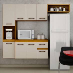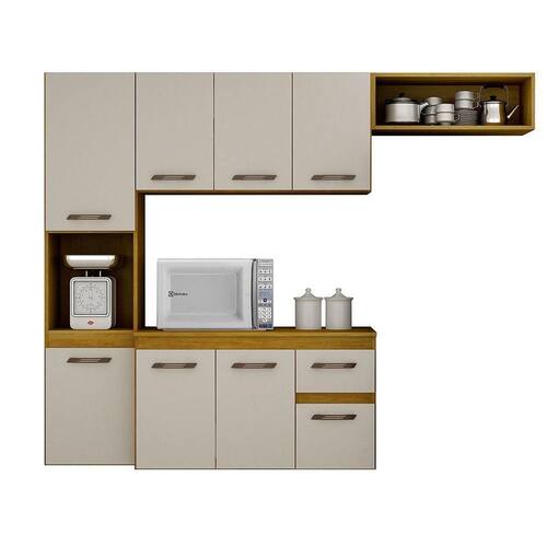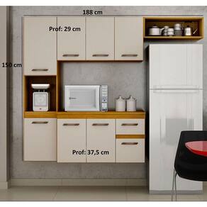 A Cozinha Brisa e fabricada em MDP de 12mm, possui 8 portas com dobradicas metalicas, 1 gaveta com corredica telescopica puxadores ABS bronze. Modelo de cozinha suspensa. Nao perca tempo garanta ja a sua e deixe sua cozinha ainda mais elegante.