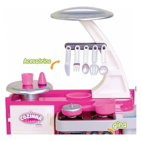 Descrição A Cozinha Classic da Cotiplás é cheia de estilo! Possui pia, fogão, forninho e vem repleta de acessórios. Tudo que um bom Chef precisa para preparar os melhores pratos! Uma cozinha super completa, os pequenos vão adorar brincar de assar, cozinhar e até lavar suas louças com sua torneirinha que saí água de verdade! Brinquedo que permite à criança imitar, imaginar, criar, simular e reproduzir situações do cotidiano familiar.Altura do Produto Montado:Altura : 76cmLargura: 62,5 cmCONTEÚDO DA EMBALAGEM : 01 Cozinha 01 Panela 01 Frigideira 01 Tampa 01 Copo 01 Prato 01 Saleiro 01 Colher 01 Faca 01 Garfo 01 Espátula 01 Concha