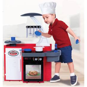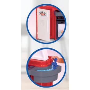Essa cozinha é completa e vem com diversos acessórios que deixarão a brincadeira ainda mais emocionante. Ela possui um fogãozinho, forno, pia, geladeira, porta-talheres e uma bandejinha, tudo acoplado em um único produto.